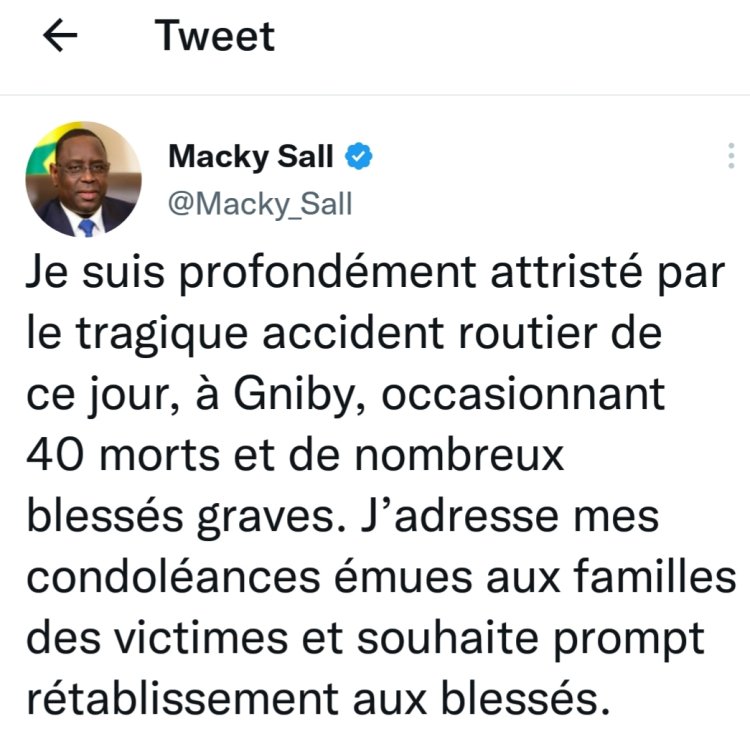 Nyuma yo kwihanganisha imiryango ya baburiye ababo muriyo mpanuka, Perezida Mackey Sall yahise atangaza ko guhera kuri uyu wambere 9 Mutarama 2023 hatangira icyunamo ki minsi itatu mu gihugu hose mu rwego rwo ku namira abantu abahitanywe niyo mpanuka.