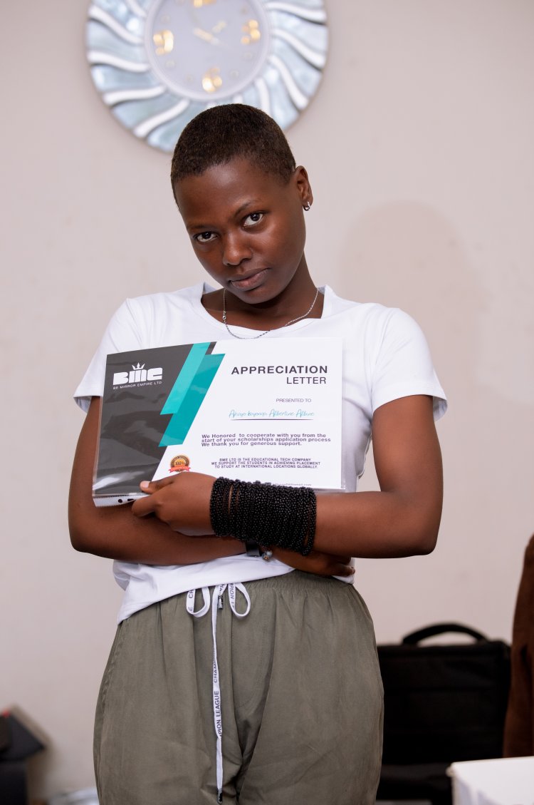 Uwitwa Albine Albertine Ahayo kayonga, yavuze ko ubujyanama yaherewe muri Be Mirror Empire LTD buzamufasha aho agiye kwiga, kandi akaba yizeye neza ko azahesha ishema Be Mirror Empire LTD.