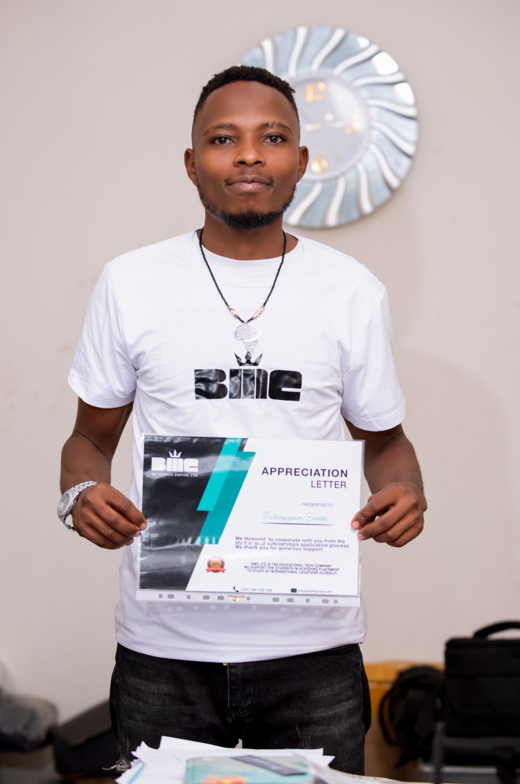 Naho Ndamyiyumva Erneste yavuze ko ntacyo yanganya Be Mirror Empire LTD kuko babashije ku mufasha kugera ku inzozi yari afite zo kujya kwiga mu mahanga akanasaba nabandi bose babyifuza kugana Be Mirror Empire LTD ikabibafashamo dore ko ifite uburambe ndetse n'ubunararibonye.