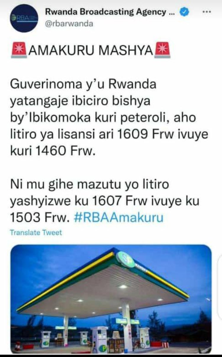 Mu kiganiro cyatambute kuri Radio na Television by'igihu kuri uyu wa 7 Kanama 2022 Leta yatangaje ibiciro bishya bikomoka kuri Peterori