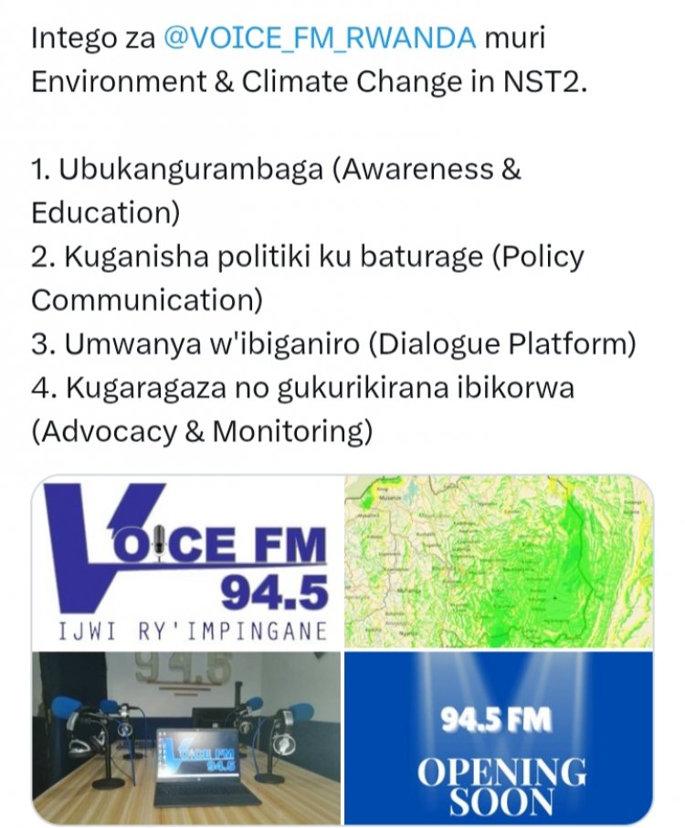 Ni muri urwo rwego Umunyamakuru akaba na nyiri Radio Nshya Voice Fm 94.5 igiye gutangira kumvikana mu minsi yavuba, Nkindi Patrick, hayisemo kugaragaza zimwe mu ntego ziyi Radio, zinjyanye NST2., ariko by'umwihariko kuri gahunda y'ibidukikije gusa.