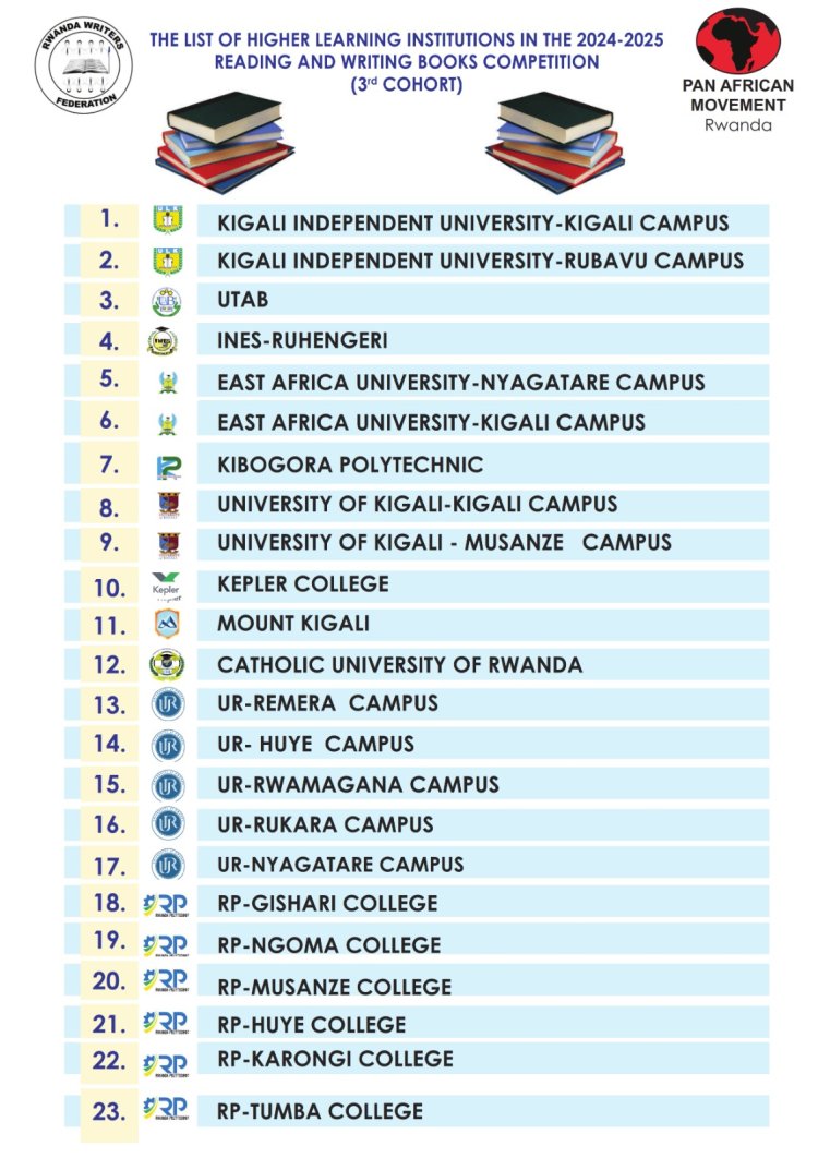 Shirikia la Waandishi wa Rwanda kwa kushirikiana na Panafrican Movement-Rwanda Chapter watazindua Shindano la Kusoma na Kuandika katika Vyuo Vikuu!