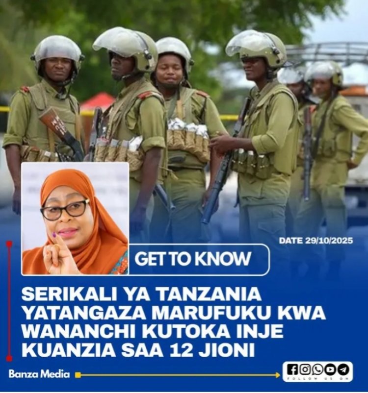 Itangazo rya tanzwe n'umuyobozi wa Polisi IGP Camillus Wambura, yavuze guhera kuri uyu wa 29 Ukwakira 2025, guhera saa kumi n'ebyiri z'umugoroba, abari mu mujyi wa Dar es Salaam batemerewe gusohoka mu mazu zabo.