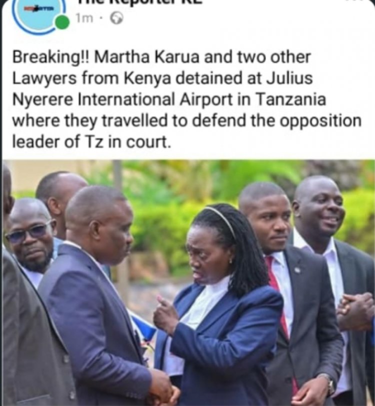 Umunyamabanga mukuru w’ishyaka ritavuga rumwe na leta rya CHADEMA, John Mnyika, yatangaje ko yamaganye icyemezo cya leta cyokubuza umunyamategeko ukomeye wo muri Kenya, Martha Karua hamwe n’abandi banyamategeko bo mu ishyirahamwe ry’abavoka bo muri Afurika y’iburasirazuba kwinjira mu gihugu kugira ngo bakurikirane Urubanza rw’umuyobozi wa CHADEMA Tundu Lissu.
