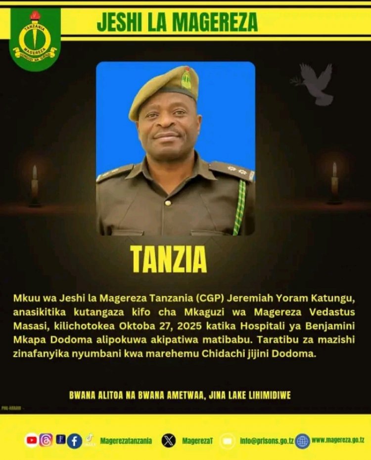 Ubuyobozi bukuru bw'Amagereza muri Tanzania, bwasohoye itangazo ry'akababaro rimenyesha ko Vedastus Masasi wari Umugenzuzi w'amagereza yitabye Imana kuri uyu wa 27 Ukwakira 2025.