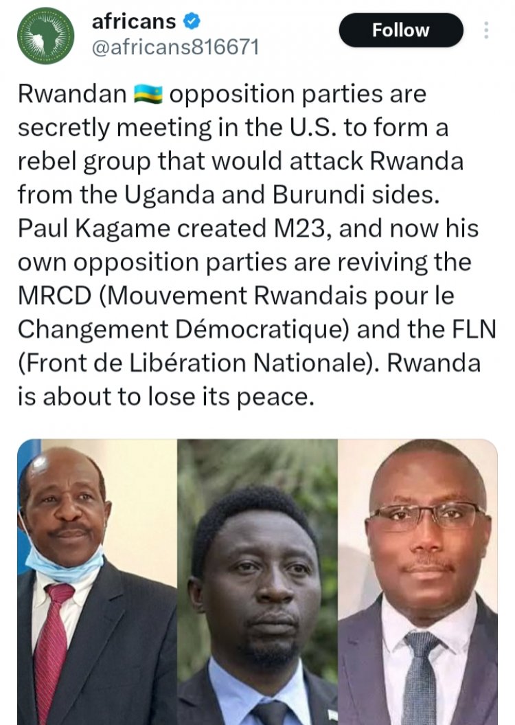 Bavuga ko Paul Kagame ari we washinze umutwe wa M23, none ubu ayo mashyaka atavuga rumwe na we akaba ari kongera kubyutsa umutwe wa MRCD (Mouvement Rwandais pour le Changement Démocratique) hamwe na FLN (Front de Libération Nationale).